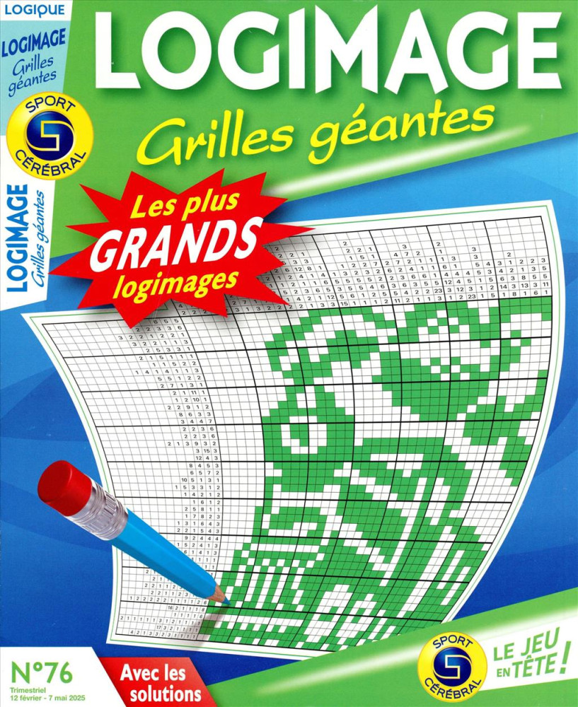 Apprêtez-vous à passer de riches heures de détente avec Logimage grilles géantes de Sport Cérébral® ! En vous fournissant les éléments permettant de reconstituer pas à pas, case après case, un dessin, cette revue vous offre amusement et satisfaction esthétique à travers les plus grands logimages. Allez les artistes, à vos crayons !
